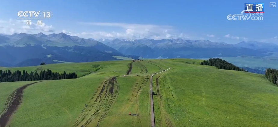 新疆伊犁喀拉峻大草原被誉为“立体草原”。远处的天山与碧绿的草原交相辉映,不少游客拿出了手机在打卡拍照。喀拉峻的独特之处在于它巧妙地利用高低起伏的地形,将草原、雪山、森林、河流、峡谷等多种自然元素巧妙地错落布局,从而呈现出层次丰富、变化万千的壮丽景观。