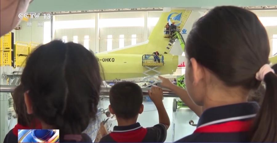 总台记者赵菁:我现在是在珠海金湾区的AG600总装生产车间的门口,这里是全国唯一一个对公众开放的特种大飞机的生产线。现在我身边到达这里的团队,就是来自珠海一个小学的学生。