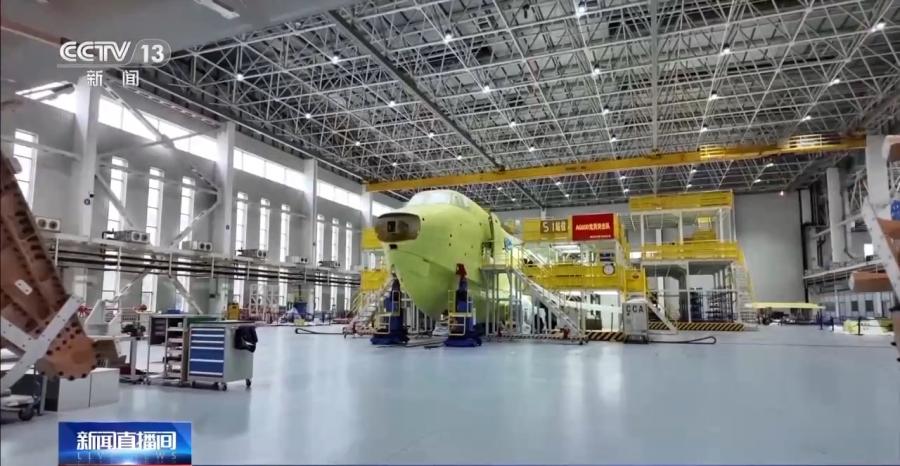 广东珠海:AG600飞机生产线 参观者络绎不绝