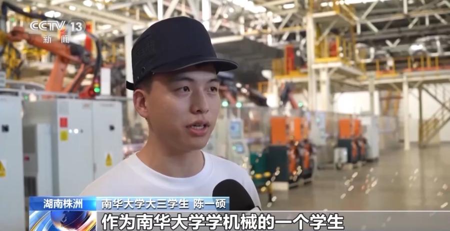 总台记者王芊多娃:我现在所在的位置就是湖南株洲的汽车制造超级工厂,也就是我们今天工业游的第一站。听说在这里从零件到整车下线,仅需4个步骤用时120秒就可以完成,这究竟是如何做到的,就让我们和大学生一起走进工厂一探究竟吧。