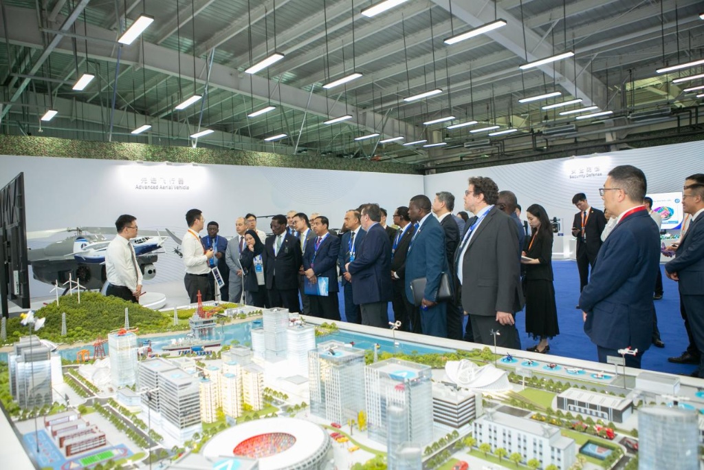 6月30日,使节们在低空经济展区驻足观看。(中国航天科技集团供图)
