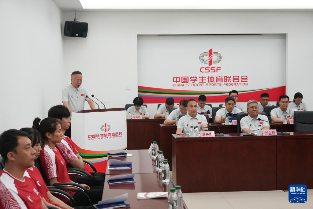 当日,第32届世界大学生夏季运动会中国代表团出征仪式在北京举行。仪式以线上和线下相结合、主会场加分会场的形式进行。本届运动会将于7月16日至27日在德国莱茵-鲁尔举行。