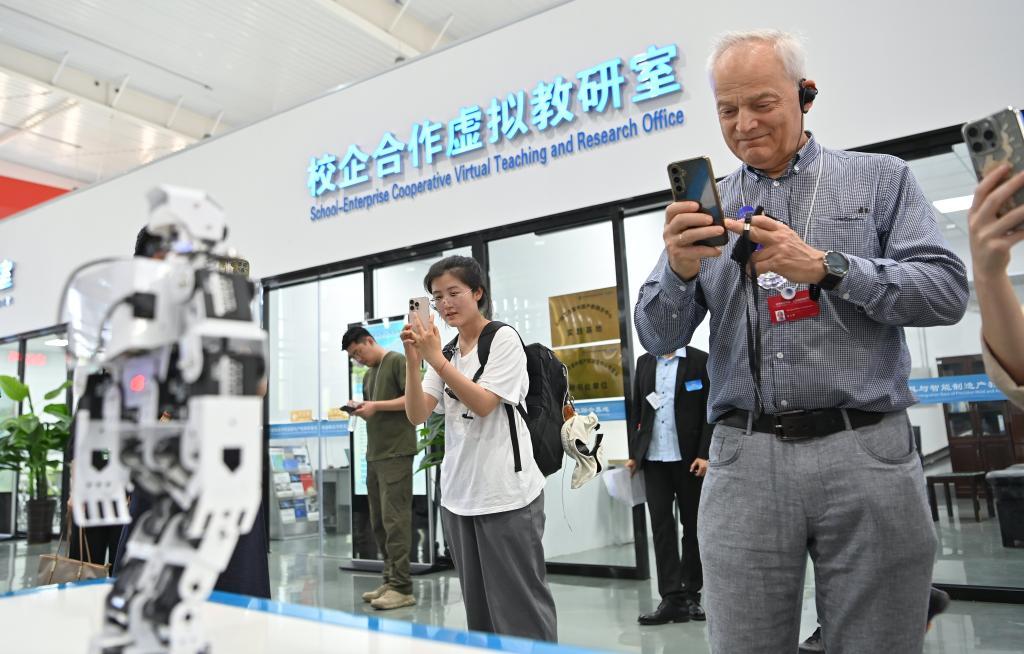 7月7日,来津参加“世界市长对话·上合峰会城市”活动的嘉宾在天津轻工职业技术学院参观。新华社记者 李然 摄