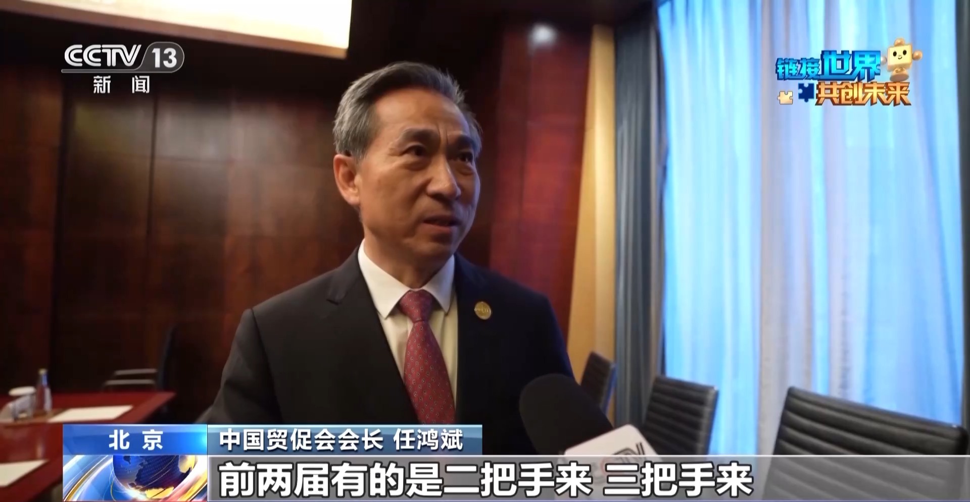 中国贸促会会长 任鸿斌:前两届有的是二把手来、三把手来,这一次都是一把手来。前两届人家回去汇报之后,就说链博会在全球加强产业链供应链合作,特别是加强和中国的产业链供应链的合作,是一个绝好的平台。