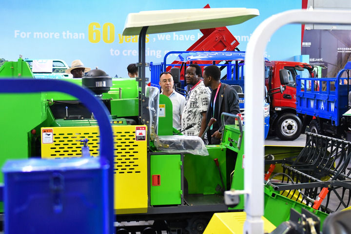 2025年6月14日,观众在长沙国际会展中心参观农机设备。6月12日至15日,第四届中国—非洲经贸博览会在湖南长沙举行。新华社记者 陈振海 摄