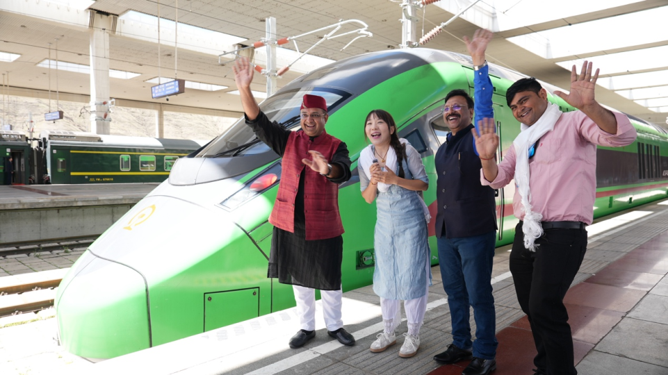 在从拉萨到日喀则的复兴号动车组列车上,印度印地新闻台总经理兼总编辑阿图尔·阿格拉瓦尔与列车员们载歌载舞,非常愉快地体验了这条穿越青藏高原的现代化铁路线。他说:“中国正飞速发展,大力推动创新,涌现出大批高新技术成果,世界各国都在向中国学习。”