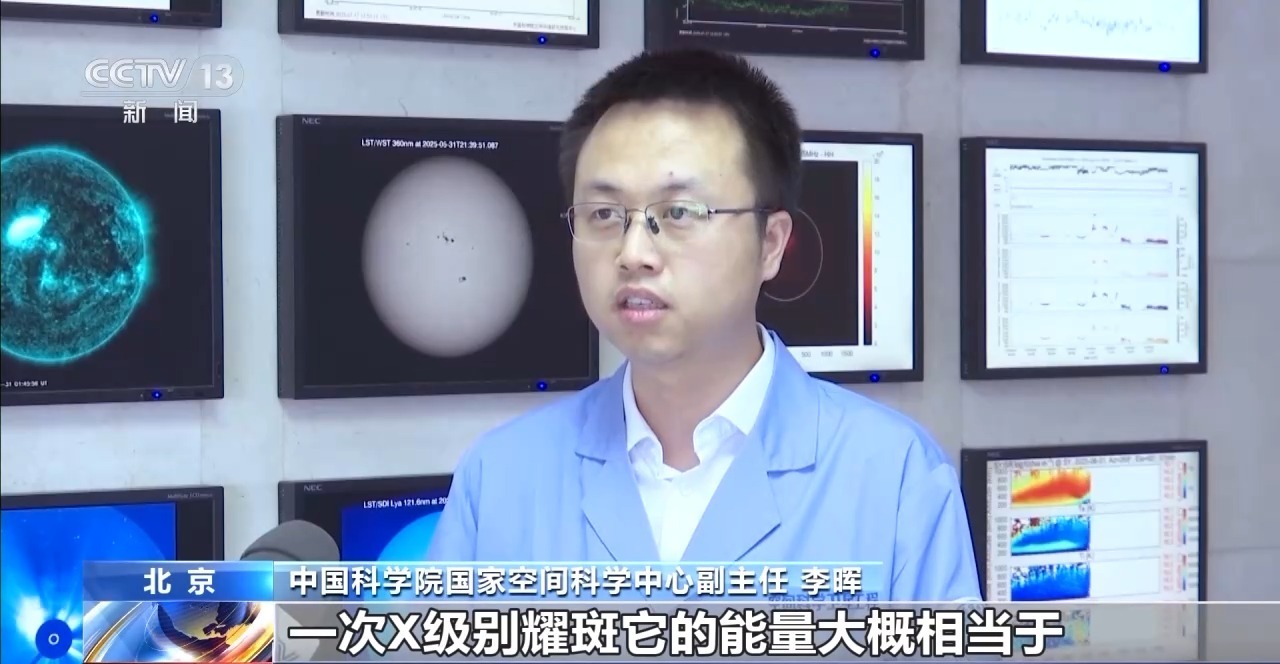 中国科学院国家空间科学中心副主任 李晖:从2024年到今年,太阳上大概有60余次X级别的大耀斑产生,一次X级别耀斑的能量大概相当于中国30万年用电量。这些X级的耀斑会引发日冕物质抛射,传播到地球以后会引起空间环境的剧烈扰动。去年5月,多个X级别耀斑引发特大磁暴事件,10月份也有超大磁暴引起了我国电离层大面积的减弱甚至消失,对通讯导航造成了很强的扰动和危害。