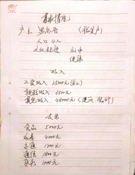 姚小翔的入户家庭情况调查手记(受访者供图)