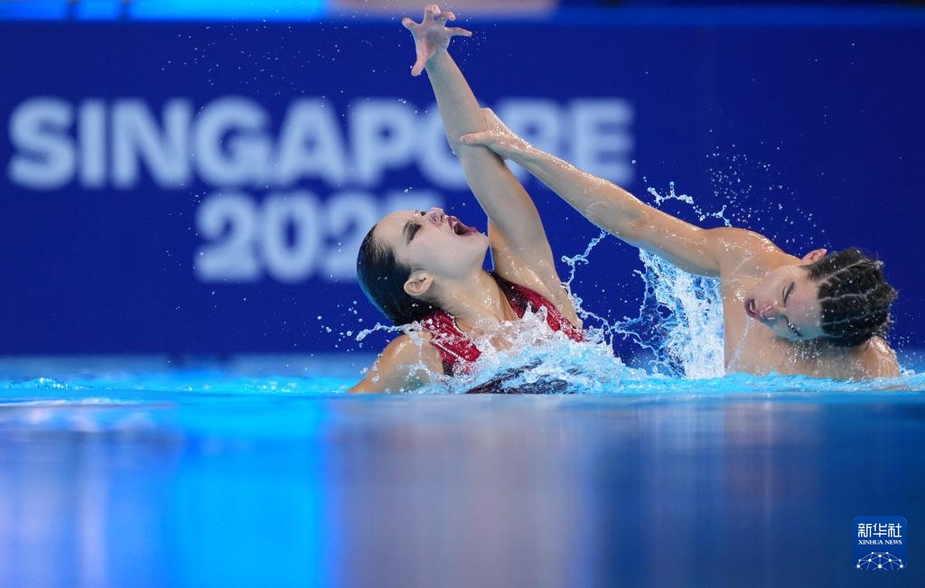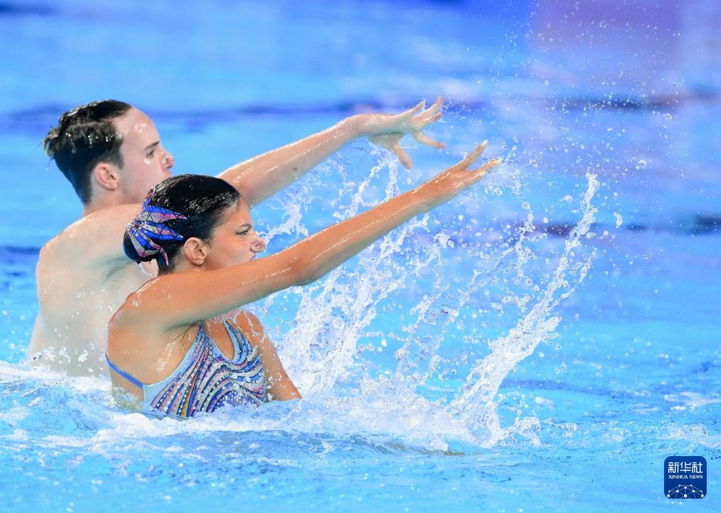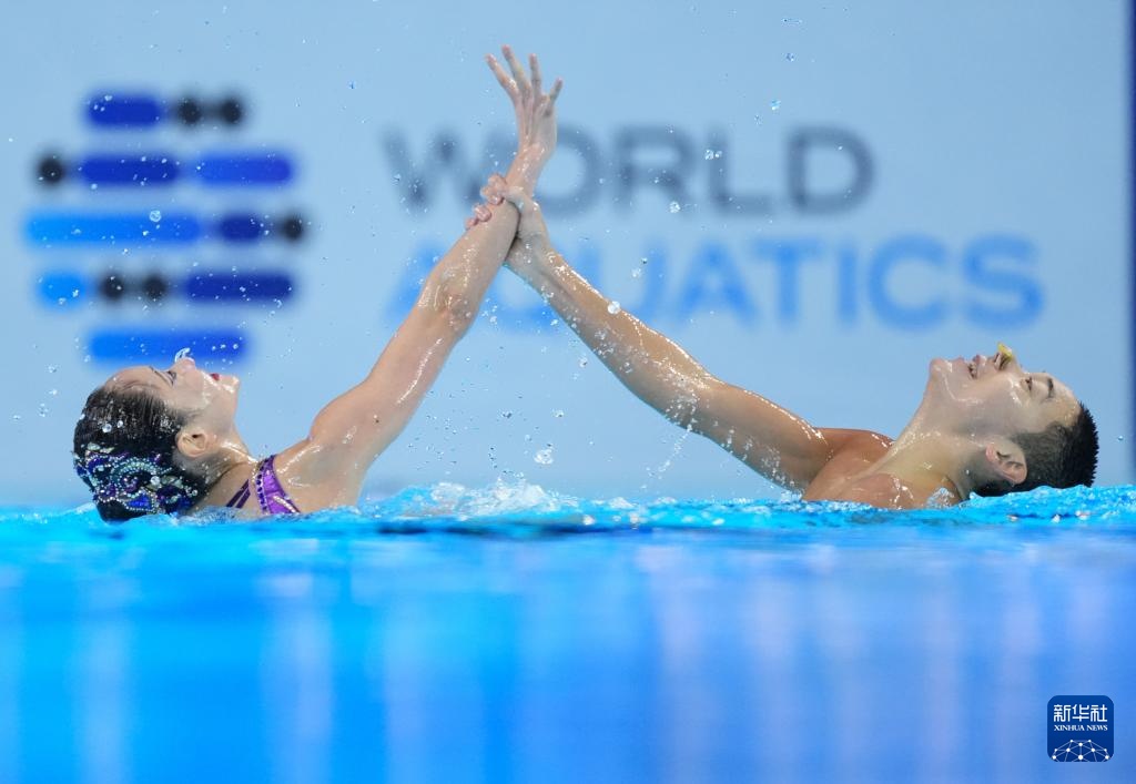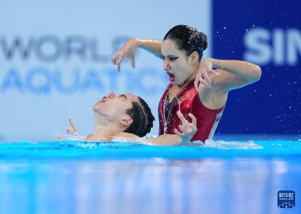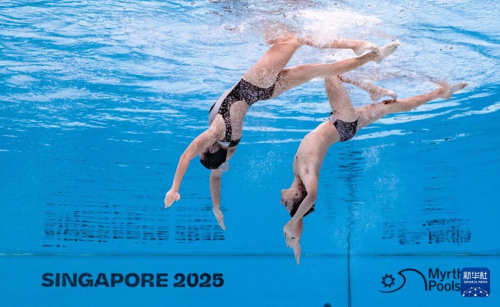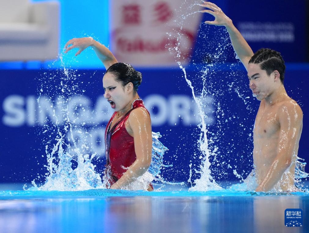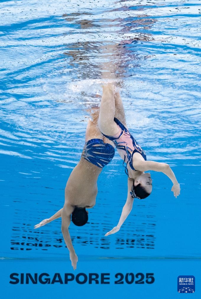 当日,2025年世界游泳锦标赛花样游泳混合双人技术自选决赛在新加坡举行。
