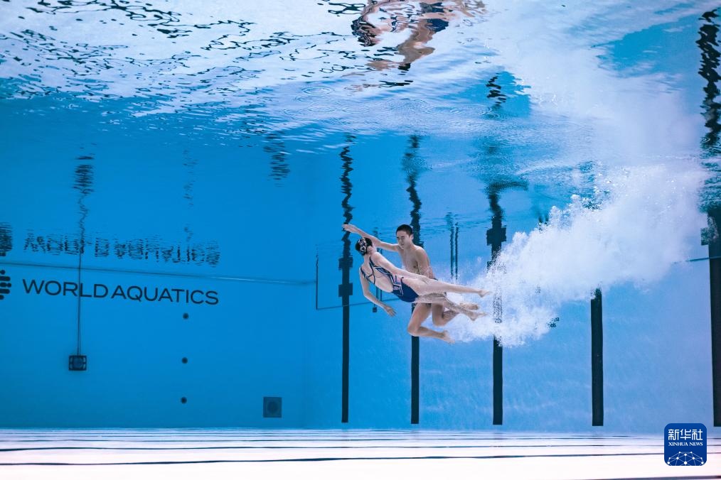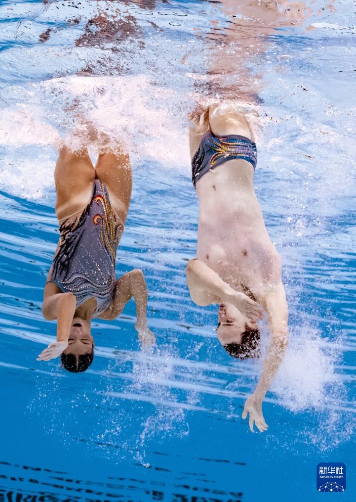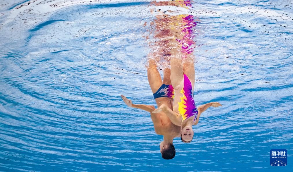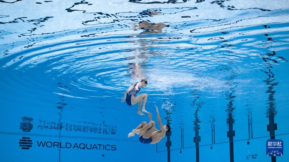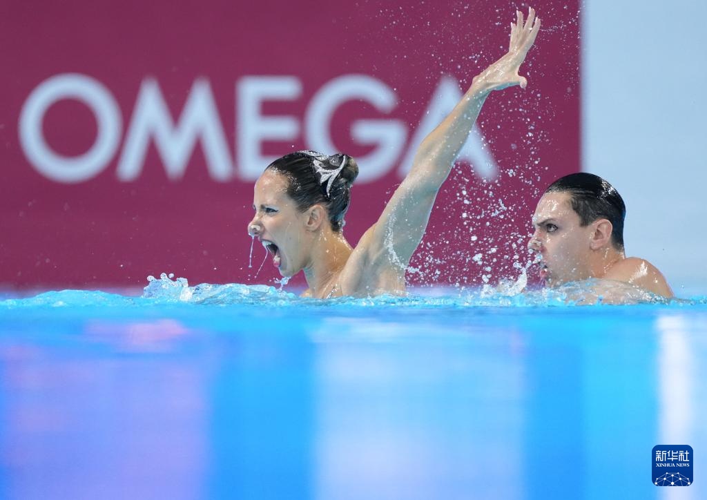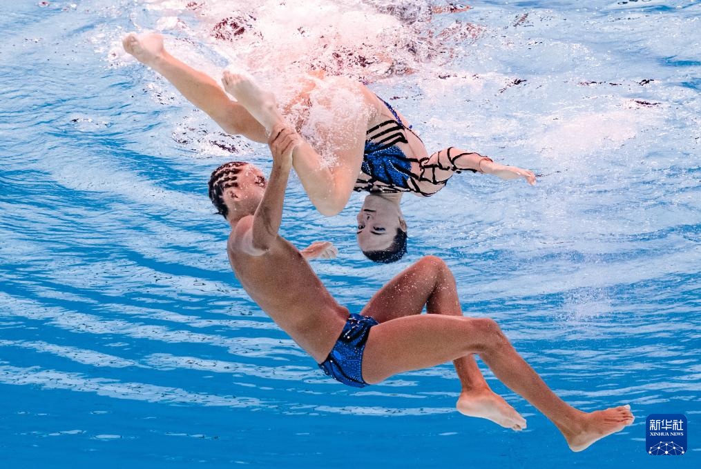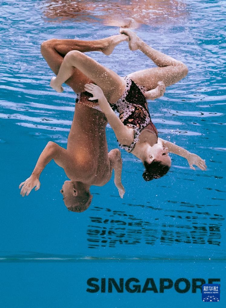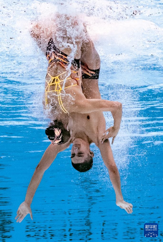 当日,2025年世界游泳锦标赛花样游泳混合双人技术自选决赛在新加坡举行。