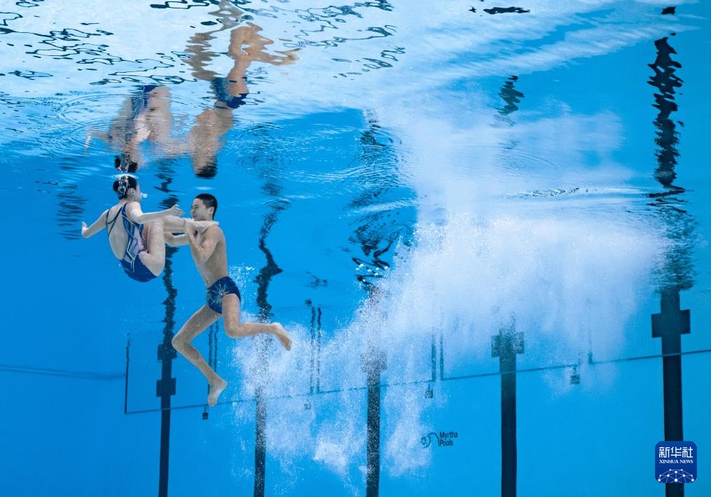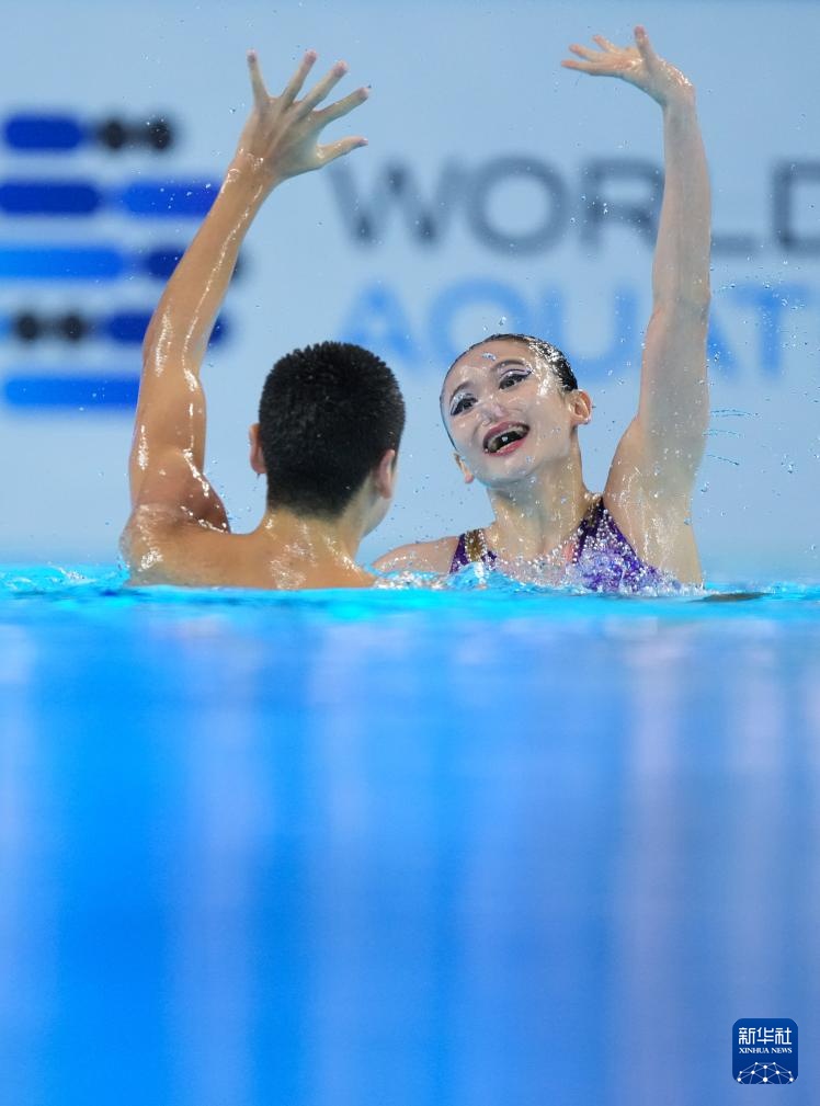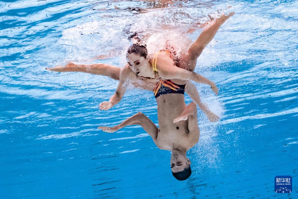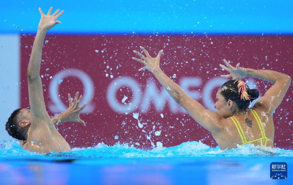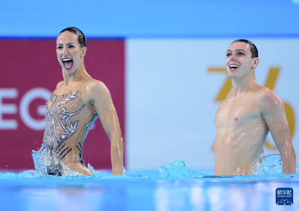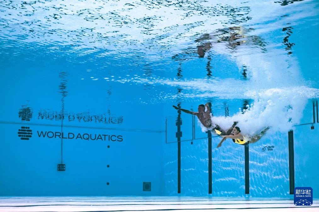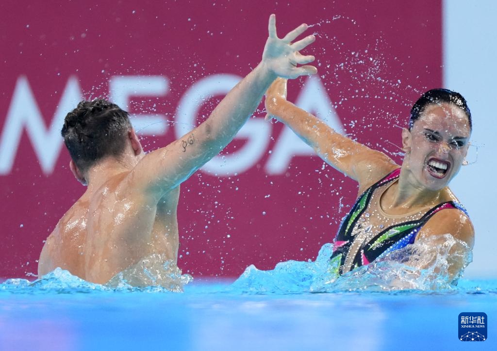 当日,2025年世界游泳锦标赛花样游泳混合双人技术自选决赛在新加坡举行。