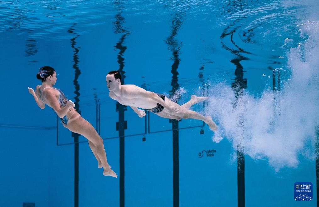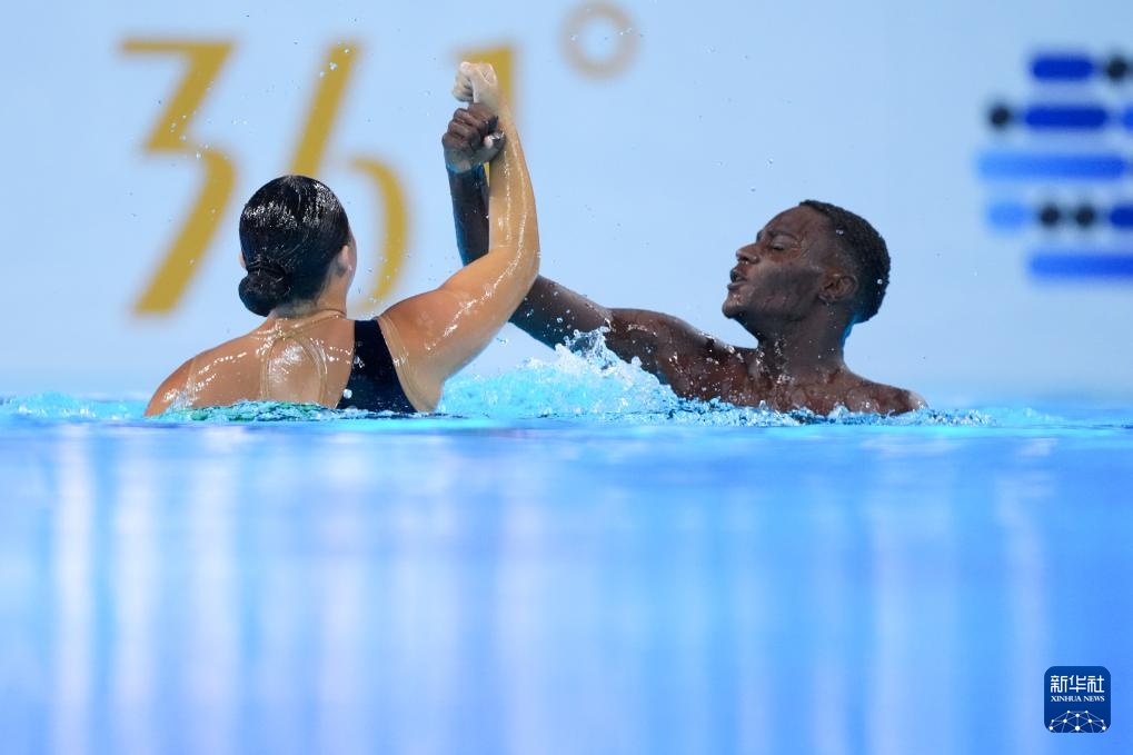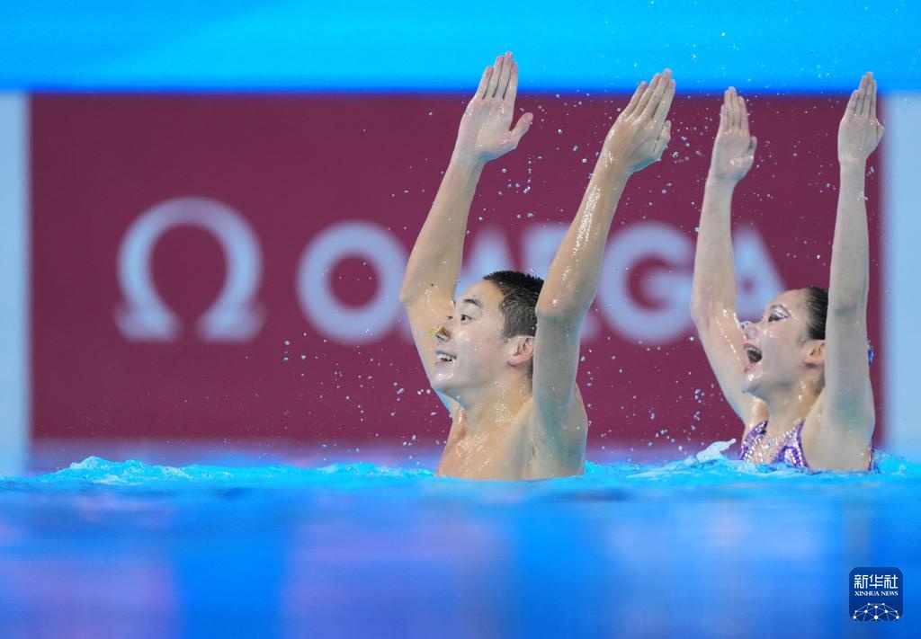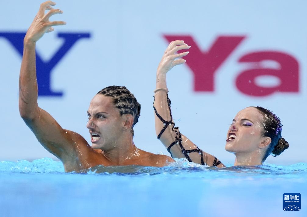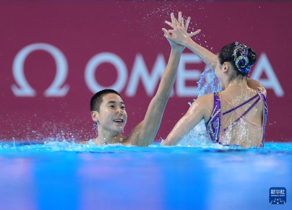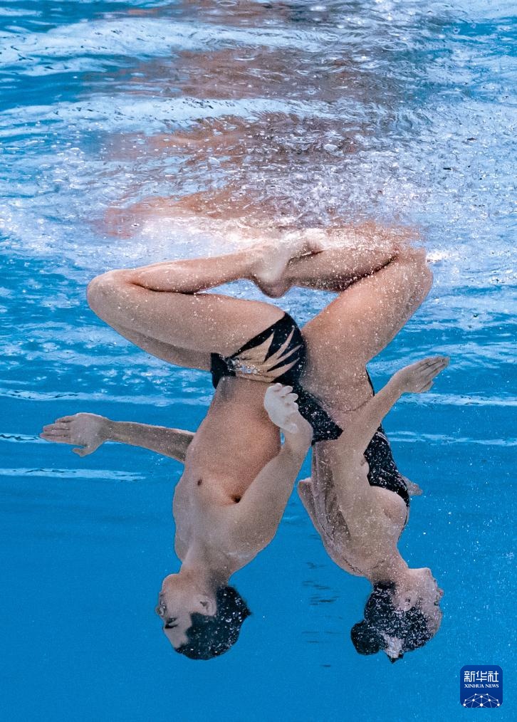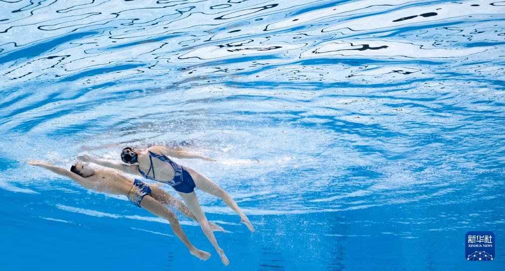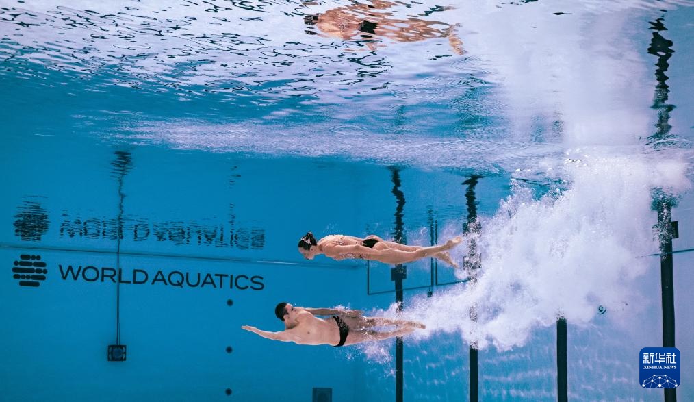 当日,2025年世界游泳锦标赛花样游泳混合双人技术自选决赛在新加坡举行。