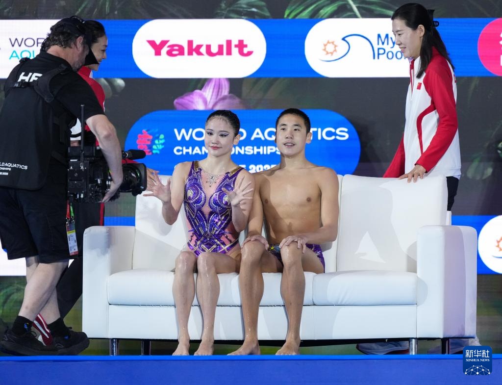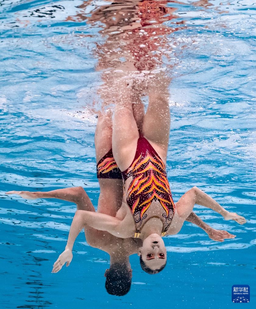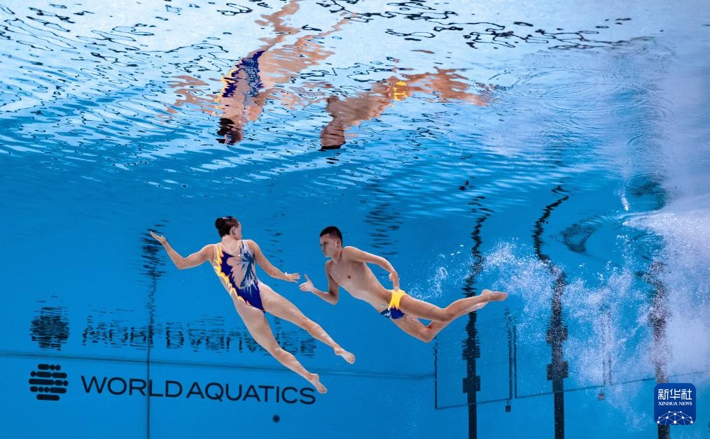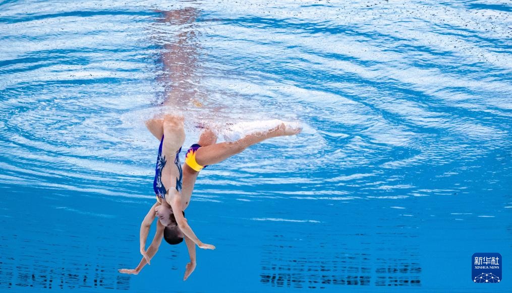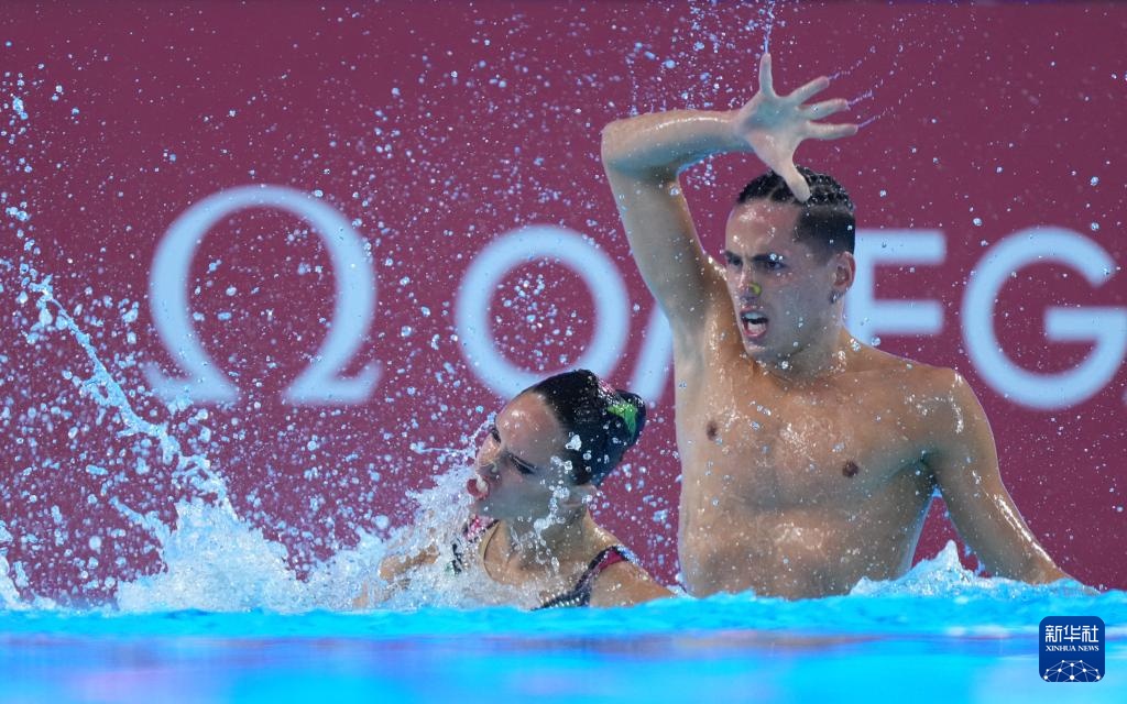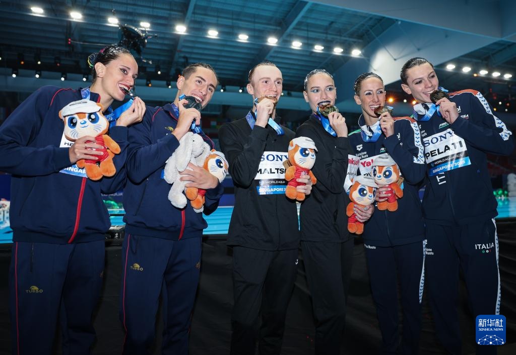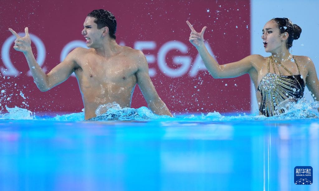 当日,2025年世界游泳锦标赛花样游泳混合双人技术自选决赛在新加坡举行。