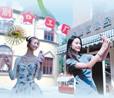 游客在辽宁沈阳中晨电影小镇文化产业园拍照打卡。 中晨电影小镇文化产业园供图