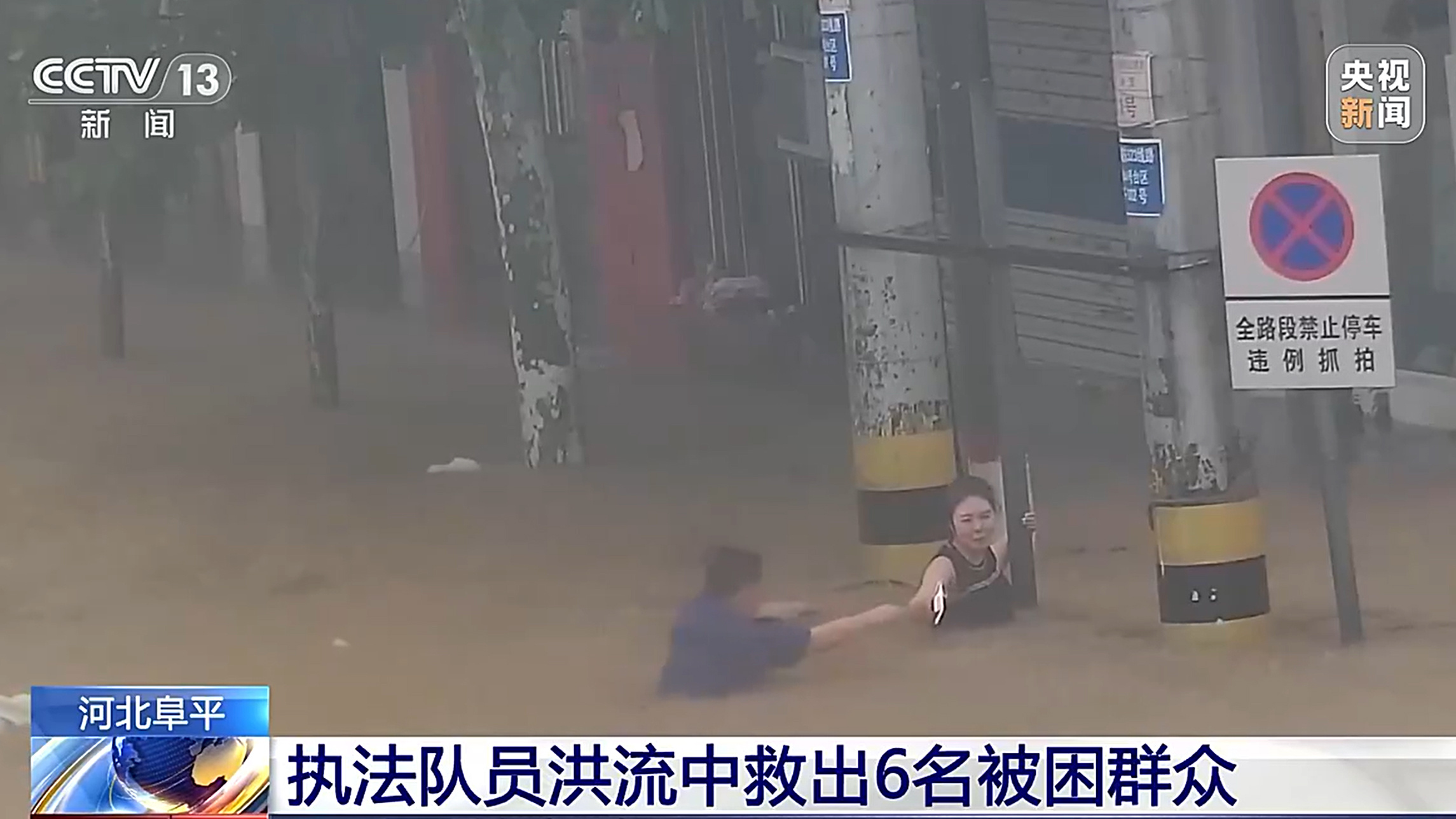 原标题:河北阜平 执法队员洪流中救出6名被困群众