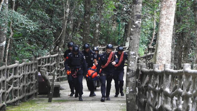 野外综合救援是本次演练的核心科目之一,具有难度大、强度高、实战性强的特点,重点检验特警队员运用超视距无人机侦察、索降救援、伤员固定转运等关键技能。11支参赛队各派出5名队员,携带专业装备,在约1.5公里山地地形中,模拟执行山地搜救失踪人员任务。