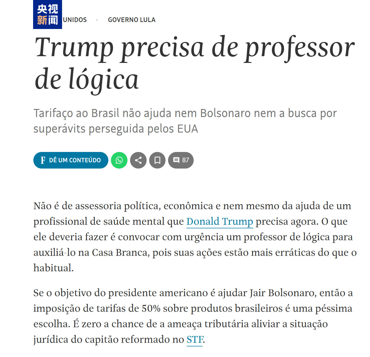 △《圣保罗页报》批美滥用关税的文章截图