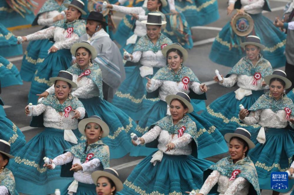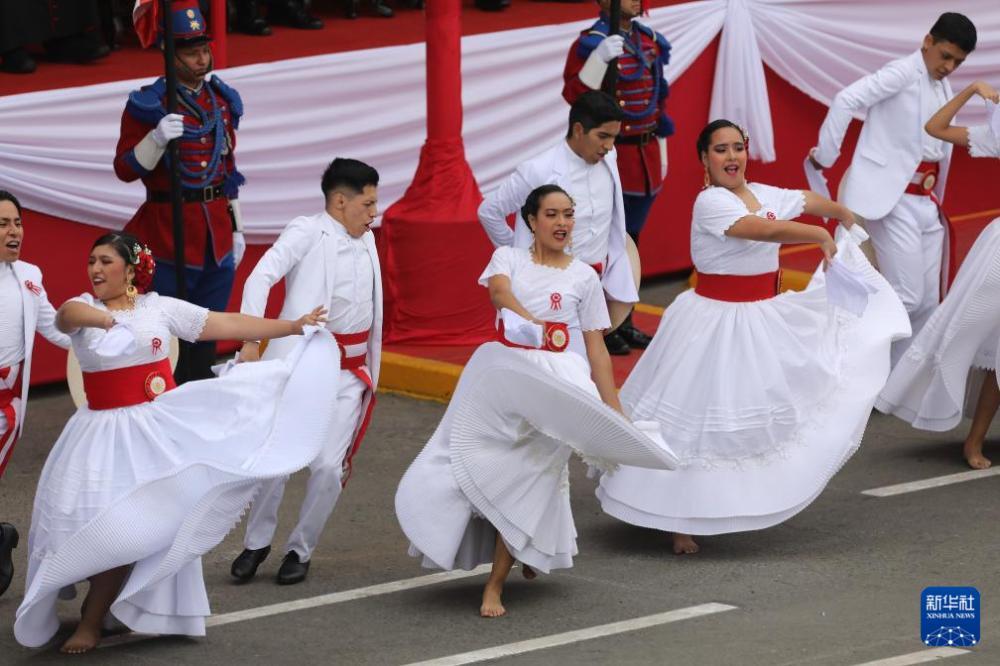 7月29日,在秘鲁首都利马,舞蹈演员在独立日阅兵式上表演民族舞蹈。7月28日是秘鲁独立204周年纪念日。