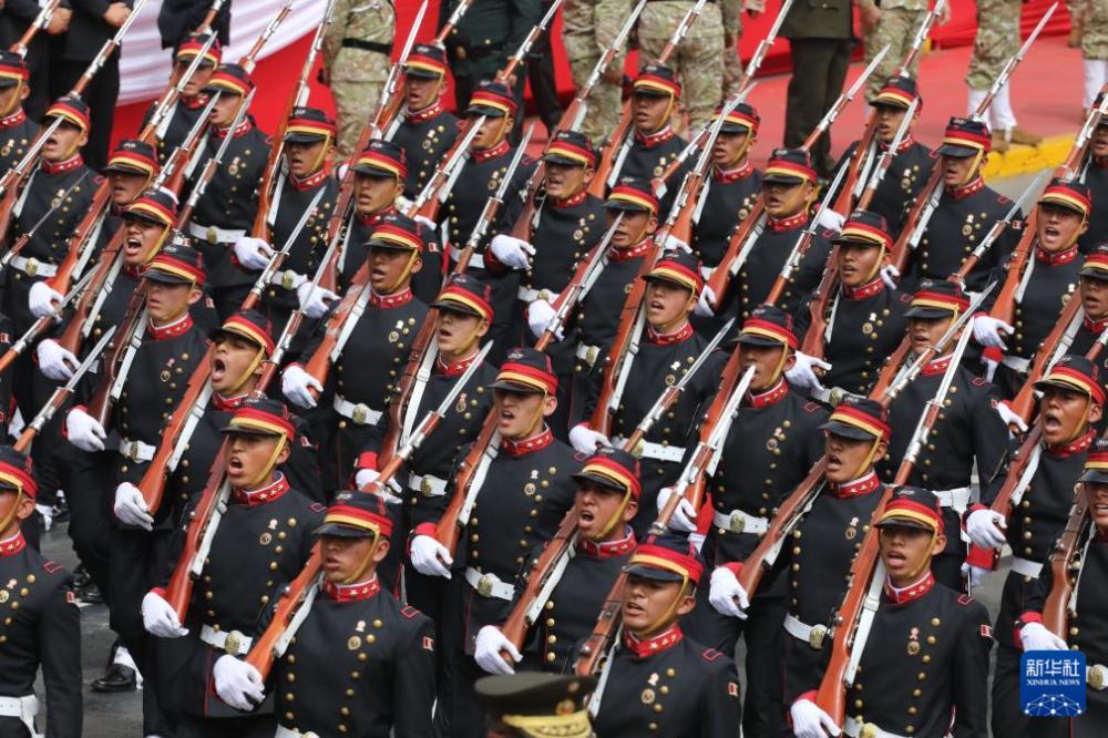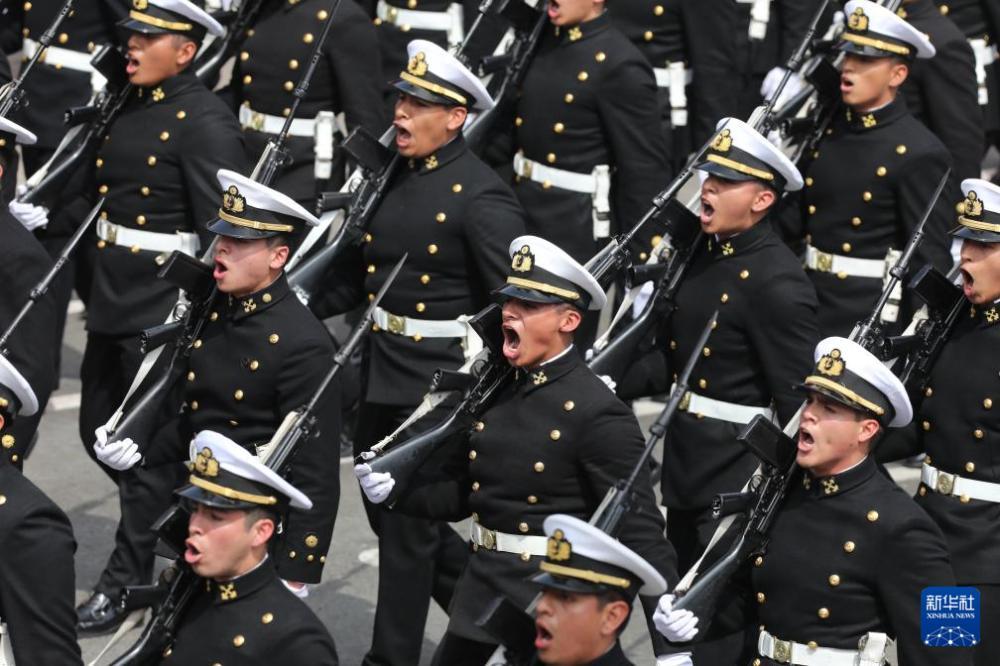 7月29日,在秘鲁首都利马,士兵参加独立日阅兵式。7月28日是秘鲁独立204周年纪念日。