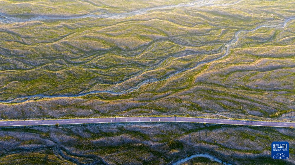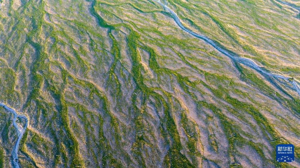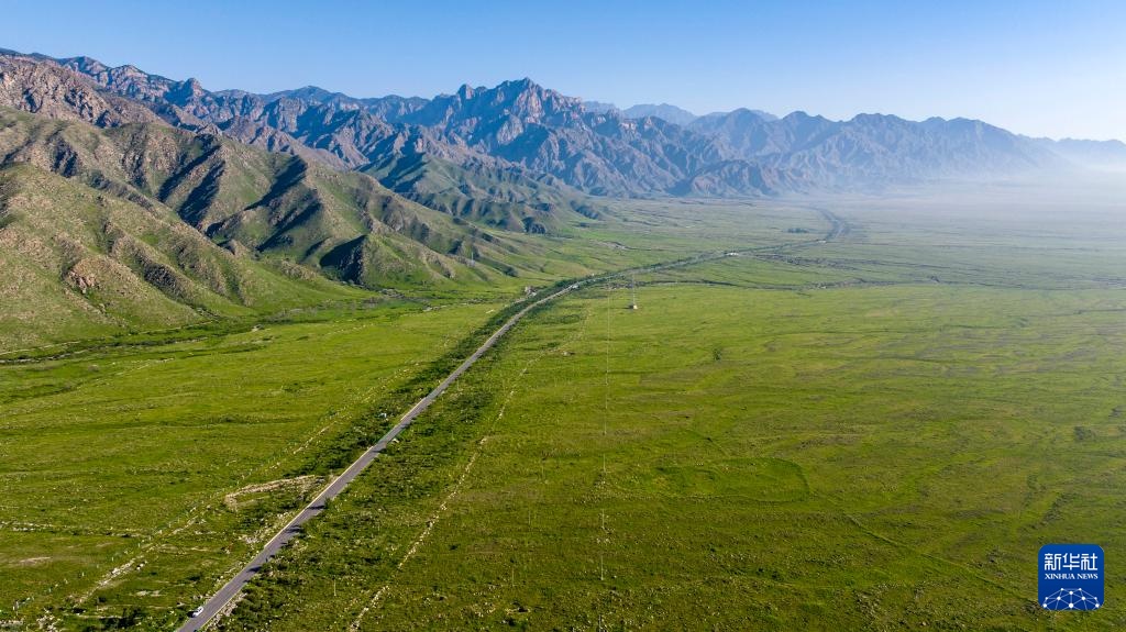 贺兰山下的戈壁滩草木茂盛(7月29日摄,无人机照片)。