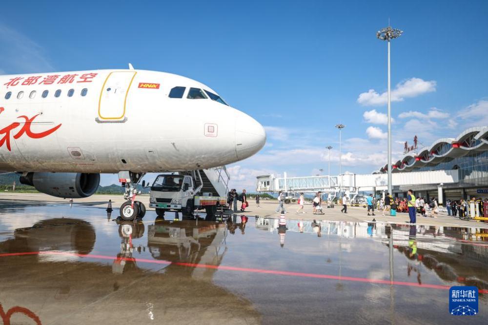 7月29日,北部湾航空GX8805次航班乘客抵达毕节飞雄机场。当日下午,由海口飞往毕节的北部湾航空GX8805次航班平稳降落跑道,标志着毕节飞雄机场正式复航。当前正值毕节避暑旅游旺季,此次复航不仅为当地群众和游客出行提供了便利,也为进一步促进地区间的交流合作、航旅融合发展注入新动力。