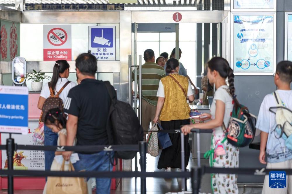 7月29日,乘客在毕节飞雄机场进行安检。当日下午,由海口飞往毕节的北部湾航空GX8805次航班平稳降落跑道,标志着毕节飞雄机场正式复航。当前正值毕节避暑旅游旺季,此次复航不仅为当地群众和游客出行提供了便利,也为进一步促进地区间的交流合作、航旅融合发展注入新动力。