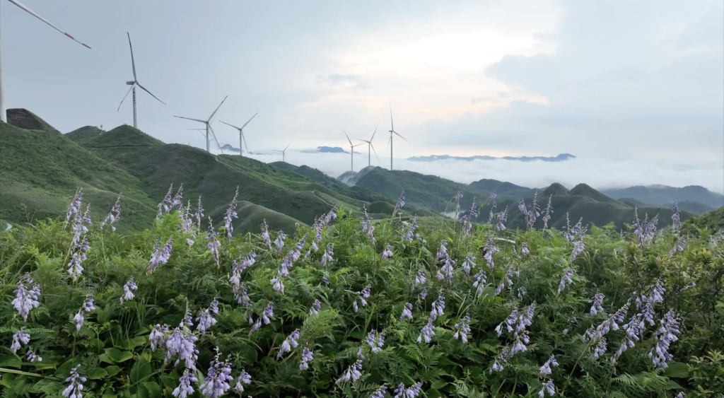盛夏时节,贵州毕节市金沙县玉簪花云海景区近5万亩的玉簪花进入盛花期。成片的紫色花朵绽放在高原山巅,吸引大量游客前来避暑观光赏花。