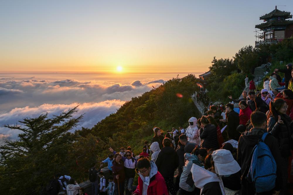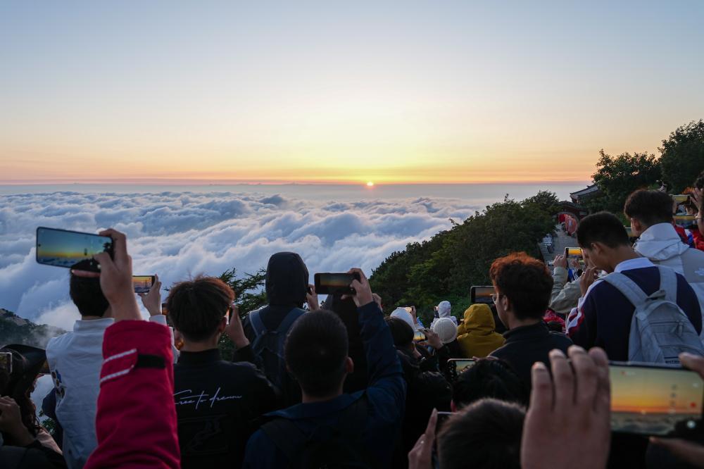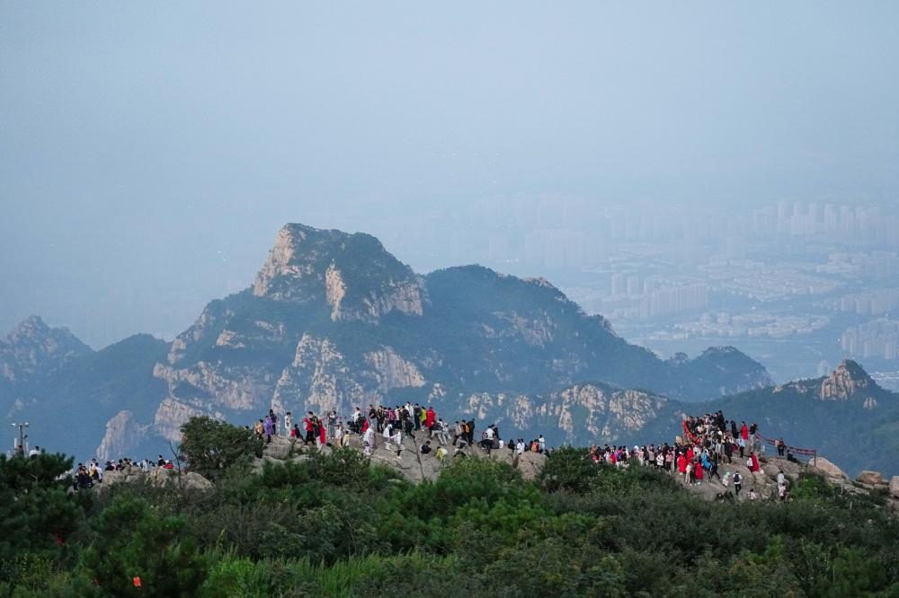 7月31日,游客在泰山景区日观峰观看日出。新华社记者 朱峥 摄