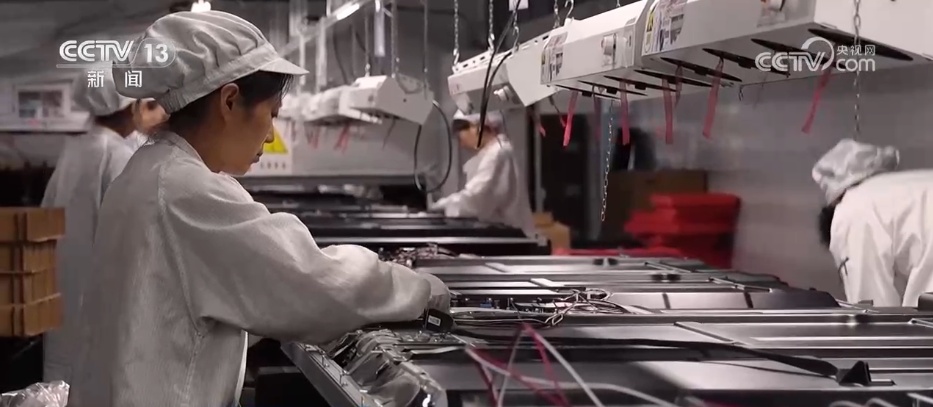 这段时间,在位于四川绵阳的长虹智慧显示工厂,高能效电视产线正开足马力生产,平均每1分钟就有1台85寸的一级能效智能电视下线。这条产线是去年底企业投资近千万元,在原有产线基础上改造升级而成,在满产情况下,日产能超过2000台。