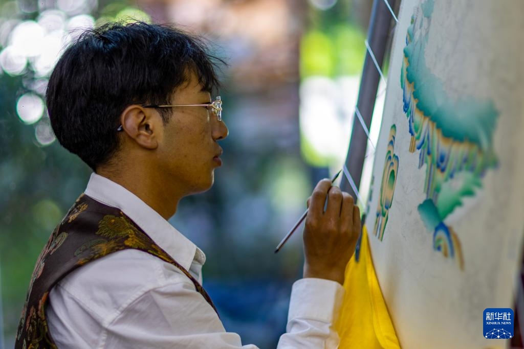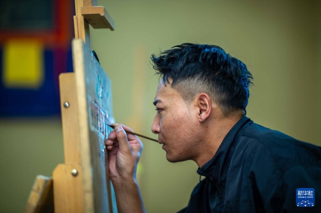 8月6日,一名画师在绘制唐卡。藏族唐卡入选国家级非物质文化遗产代表性项目名录。新华社记者 姜帆 摄
