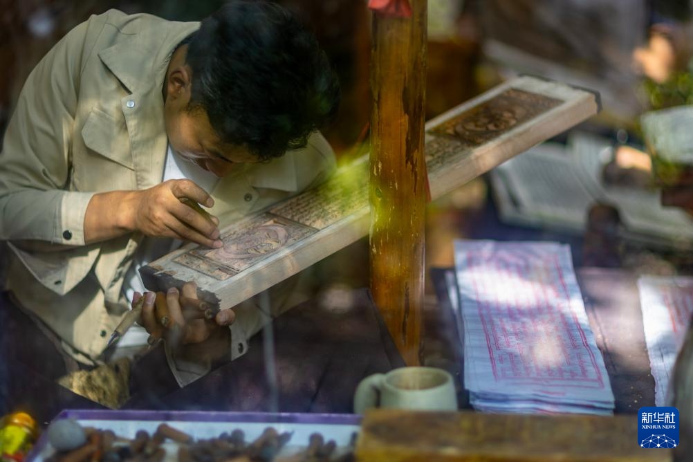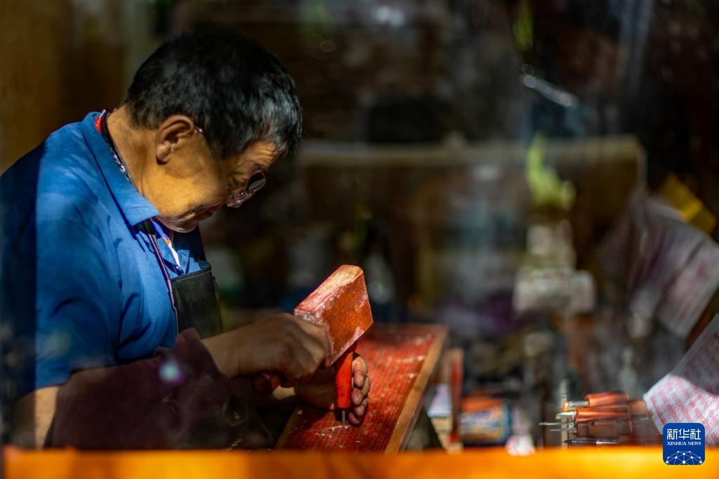 8月6日,雕刻师在工作中。西藏雪巴康雕版印刷制作技艺入选西藏自治区级非物质文化遗产代表性项目名录。新华社记者 姜帆 摄