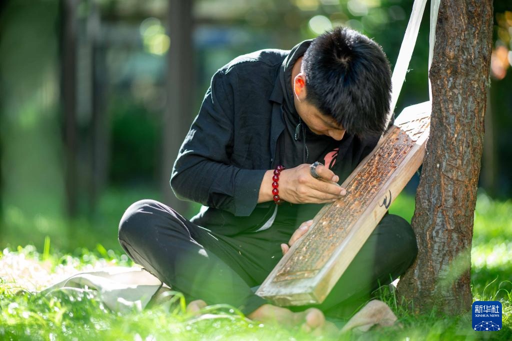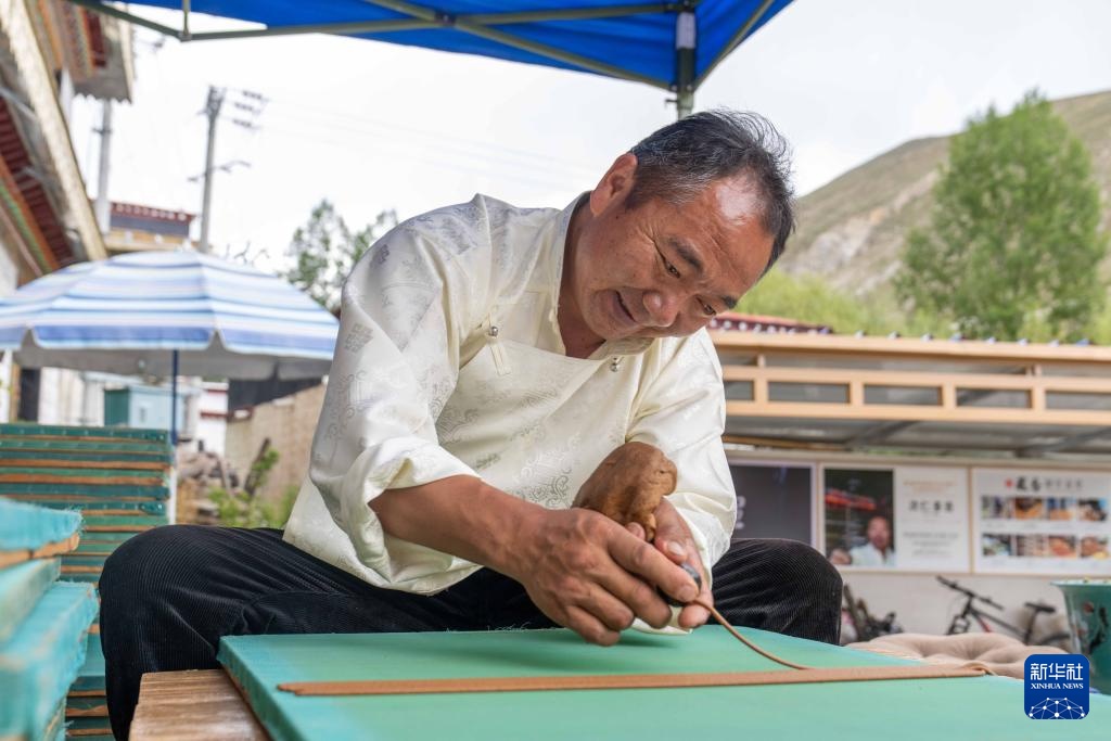 这是一名传承西藏传统雕刻修复技艺的雕刻师(8月6日摄)。西藏传统雕刻修复技艺入选西藏自治区级非物质文化遗产代表性项目名录。新华社记者 姜帆 摄