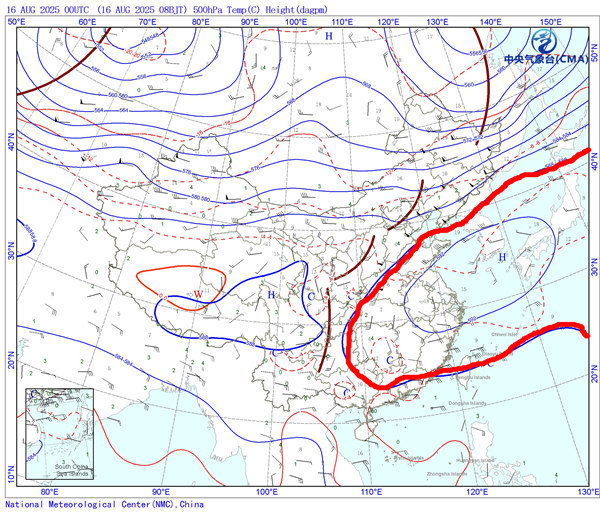 副热带高压强势回归!今天控制了黄河下游以南的广大地区,带来大范围高温闷热天气。