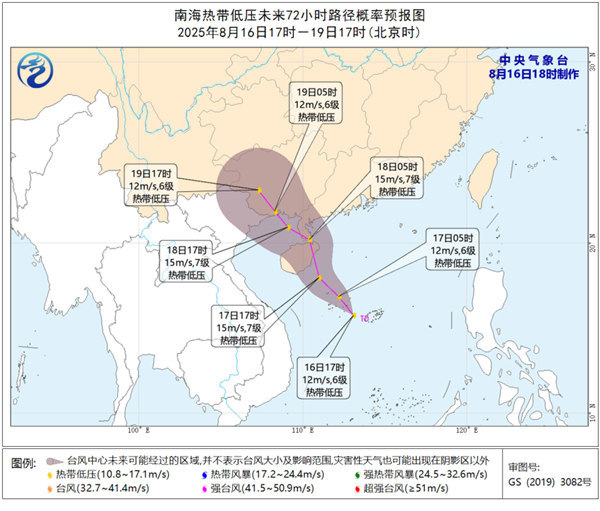 受低压以及季风气流共同影响,16至19日,海南岛、广西南部、广东南部、云南南部等地有大到暴雨,部分地区大暴雨,局地特大暴雨。雷州半岛、广西南部沿海、海南岛东部等局地最大累计降水量可达200至400毫米。