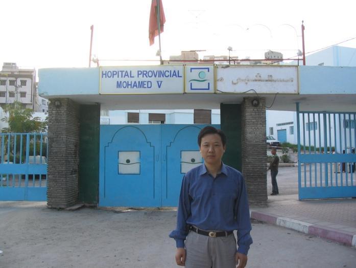 2008年,陈泽宇在摩洛哥荷赛马的穆罕默德五世医院前留影。新华社发