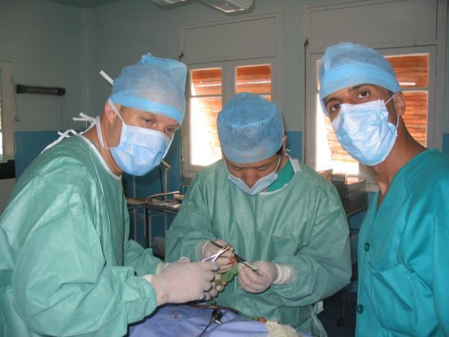 陈泽宇(中)与荷赛马的医生合作完成手术。新华社发