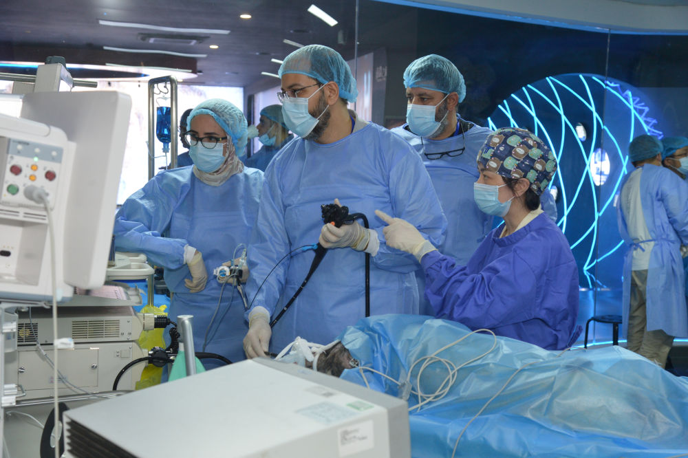 2023年7月28日,在位于南京的江苏省人民医院,消化内镜科医生为埃及学员进行“手把手”内镜教学。江苏省人民医院以消化内镜为临床技术试点,与巴基斯坦、埃及等国家和地区的医疗机构开展医疗试点合作,采取“走出去”“请进来”的方式,传授先进医疗技术,加强合作交流。