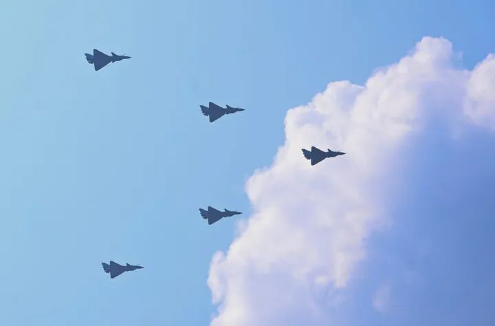 这是空中无人作战方队接受检阅。新华社记者 陈诚 摄