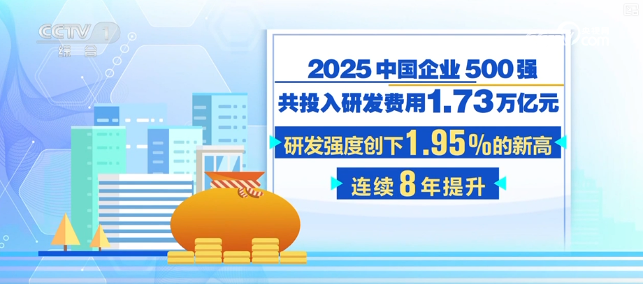 2025中国企业500强共投入研发费用1.73万亿元,研发强度创下1.95%的新高,连续8年提升。研发强度前10名有5家企业来自通信设备制造业,有8家企业为民营企业。