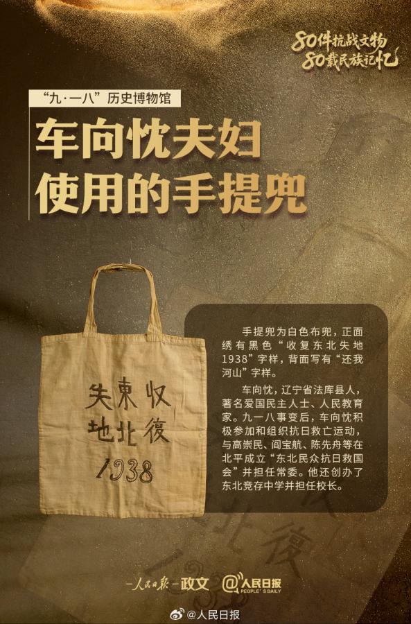 抗日志士在狱中写下的遗书、绣有“收复东北失地 1938”“还我河山”字样的手提兜、东北抗联被服厂缝纫机……九一八事变爆发94周年,“80件抗战文物80载民族记忆”系列报道第七期,见证白山黑水间的不屈抗争↓↓铭记历史,守护永不褪色的抗战记忆!