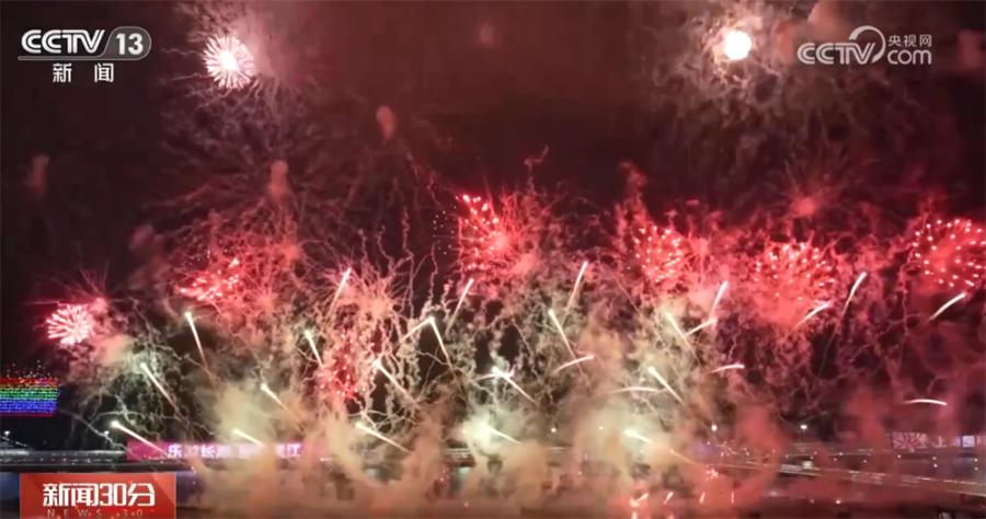 9月30日晚,为庆祝中华人民共和国成立76周年,一场大型光影烟花秀在上海吴淞口滨江上演。伴随着交响乐,千架无人机缓缓升起,在夜空中汇聚成“欢度国庆”“哪吒闹海”等图样。光影秀之后,绚烂的烟花点亮夜空。