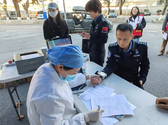 11月14日下午,国家移民管理局常备力量第二总队组织开展无偿献血活动。本次共有20多名民警自愿到献血点参加验血,其中17名民警验血合格成功献血,累计献血量达5600毫升。