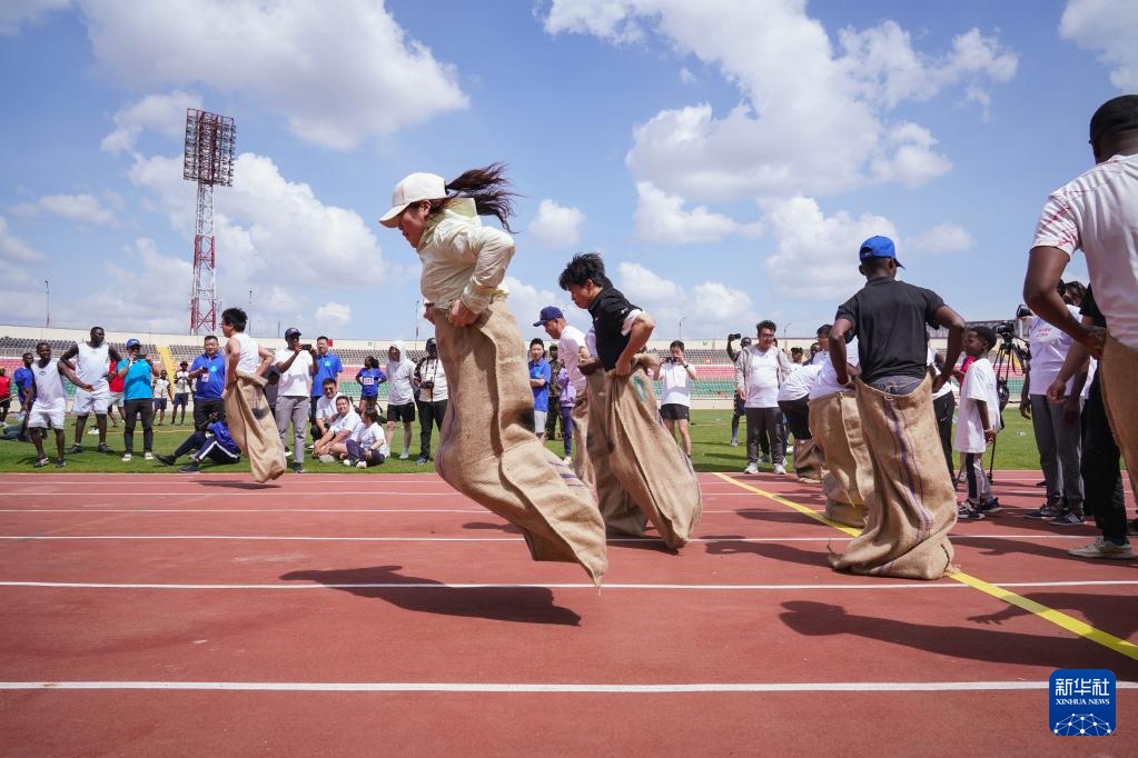 12月4日,在肯尼亚首都内罗毕举行的中肯友好运动会上,参赛选手在“袋鼠跳”比赛中。