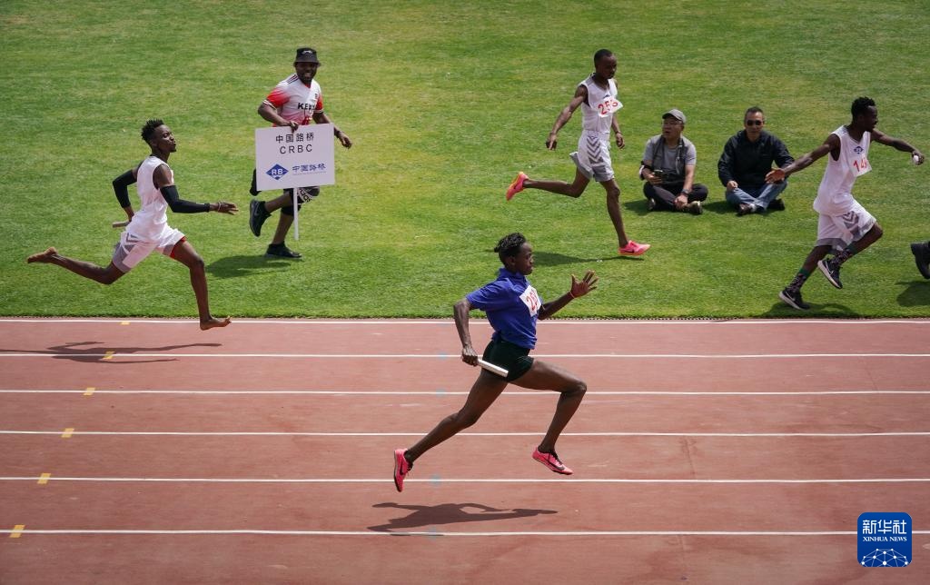12月4日,在肯尼亚首都内罗毕举行的中肯友好运动会上,参赛选手在4X100米接力赛中。