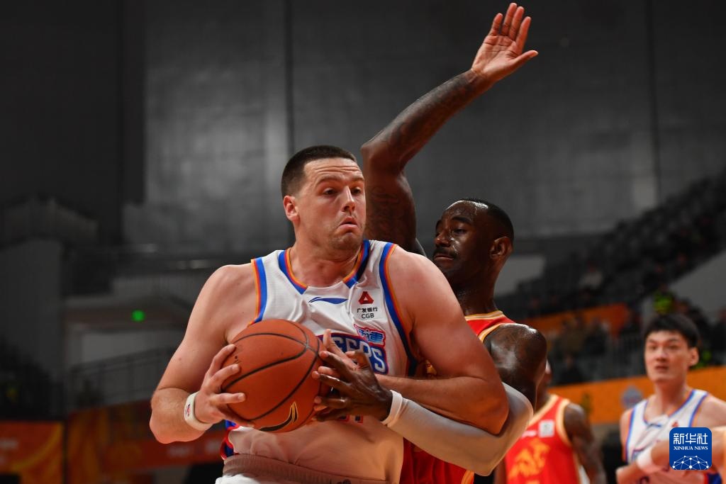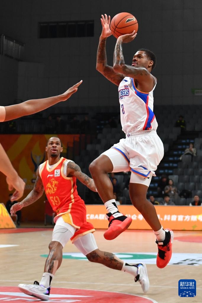 12月4日,浙江方兴渡队球员桑普森(右一)在比赛中投篮。