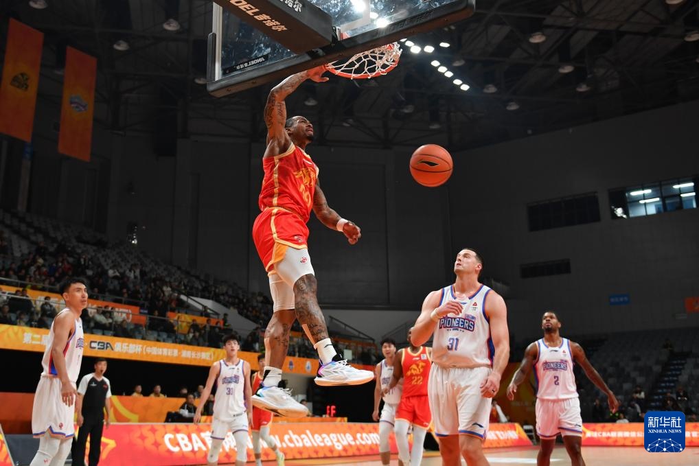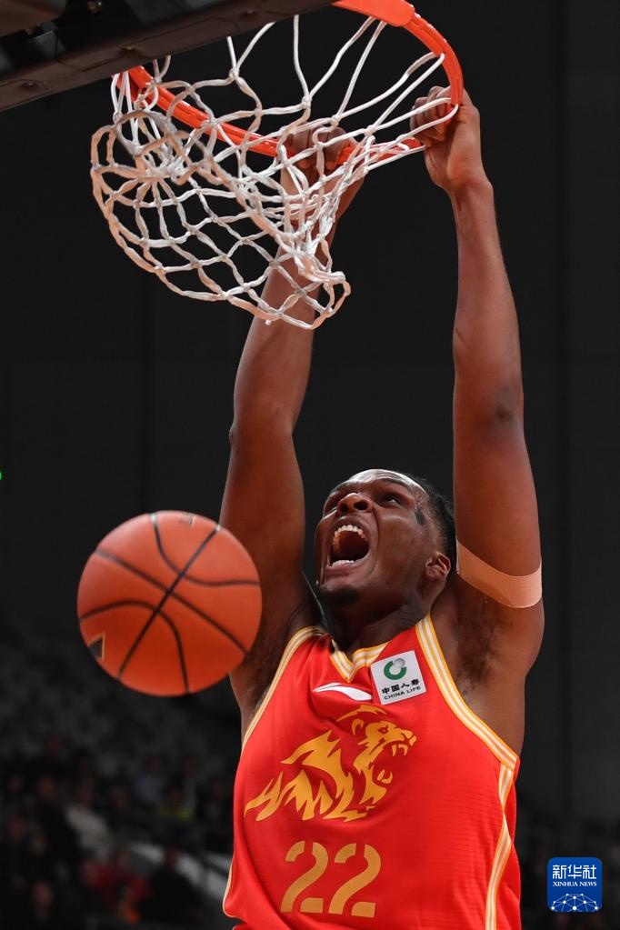 12月4日,浙江方兴渡队球员卡尔顿在比赛中扣篮。
