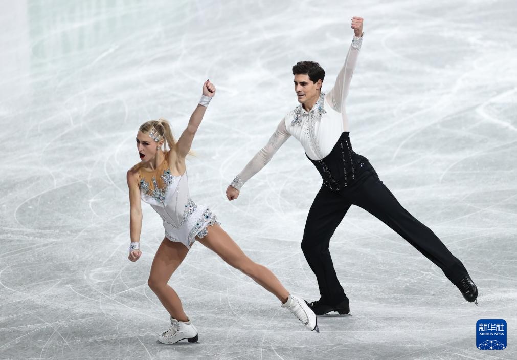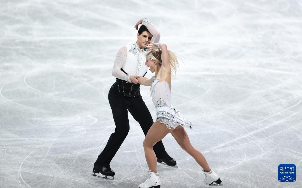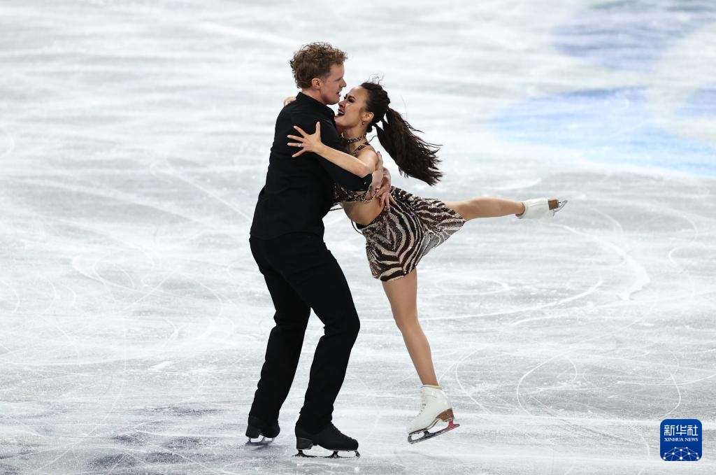 12月4日,美国组合乔克(右)/贝茨在冰舞韵律舞比赛中。他们以88.74分的成绩暂列第一。