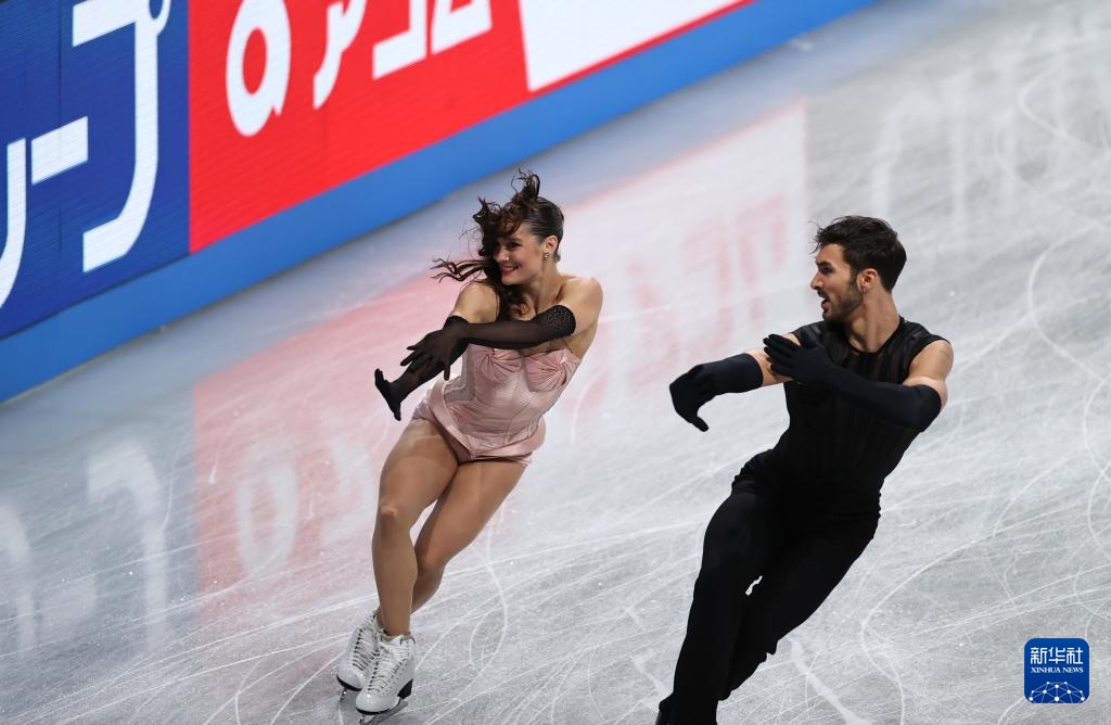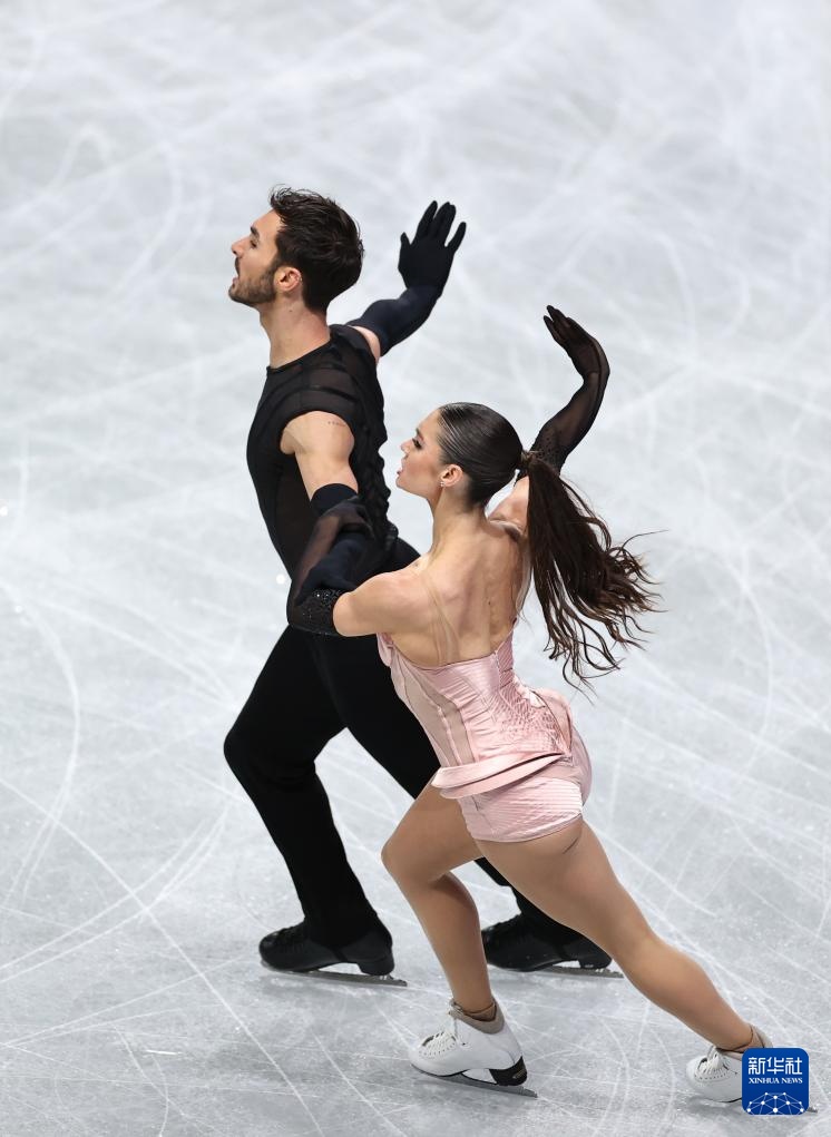 12月4日,法国组合博德里(左)/西泽龙在冰舞韵律舞比赛中。他们以87.56分的成绩暂列第二。