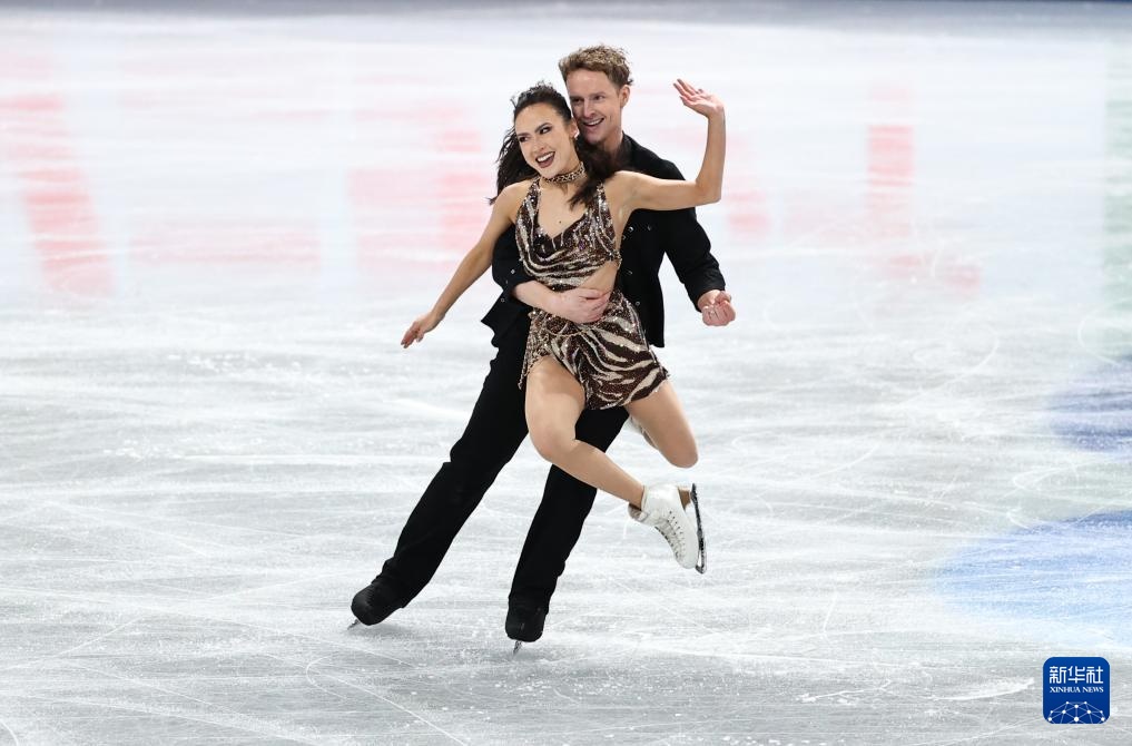 12月4日,加拿大组合吉勒斯(右)/波里尔在冰舞韵律舞比赛中。他们以82.89分的成绩暂列第三。
